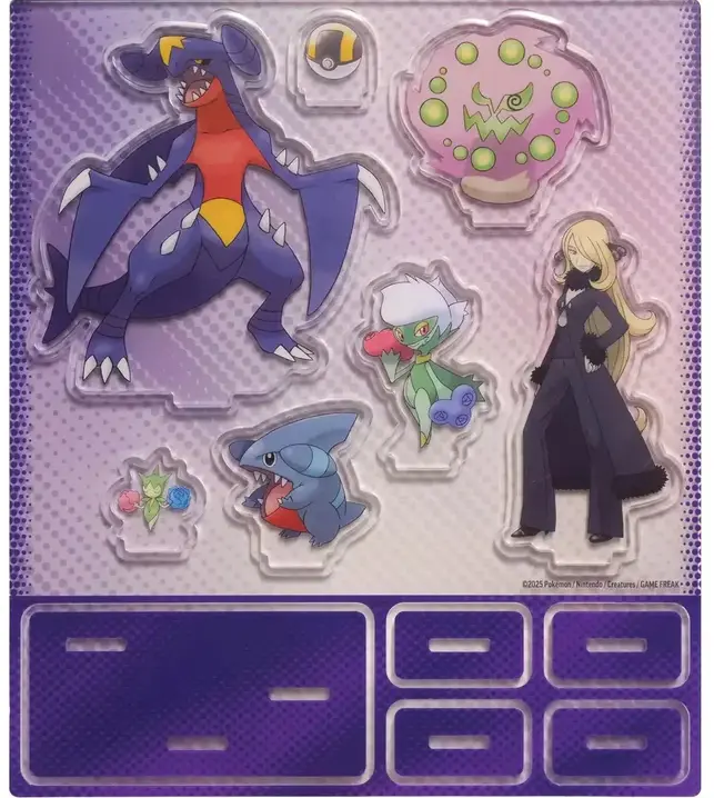 - 1 sheet of acrylic standees featuring Cynthia, Garchomp, and more